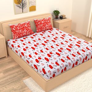 VAA Single Blooming Floral Bedding Bedsheet Set – 144 TC 100% Cotton