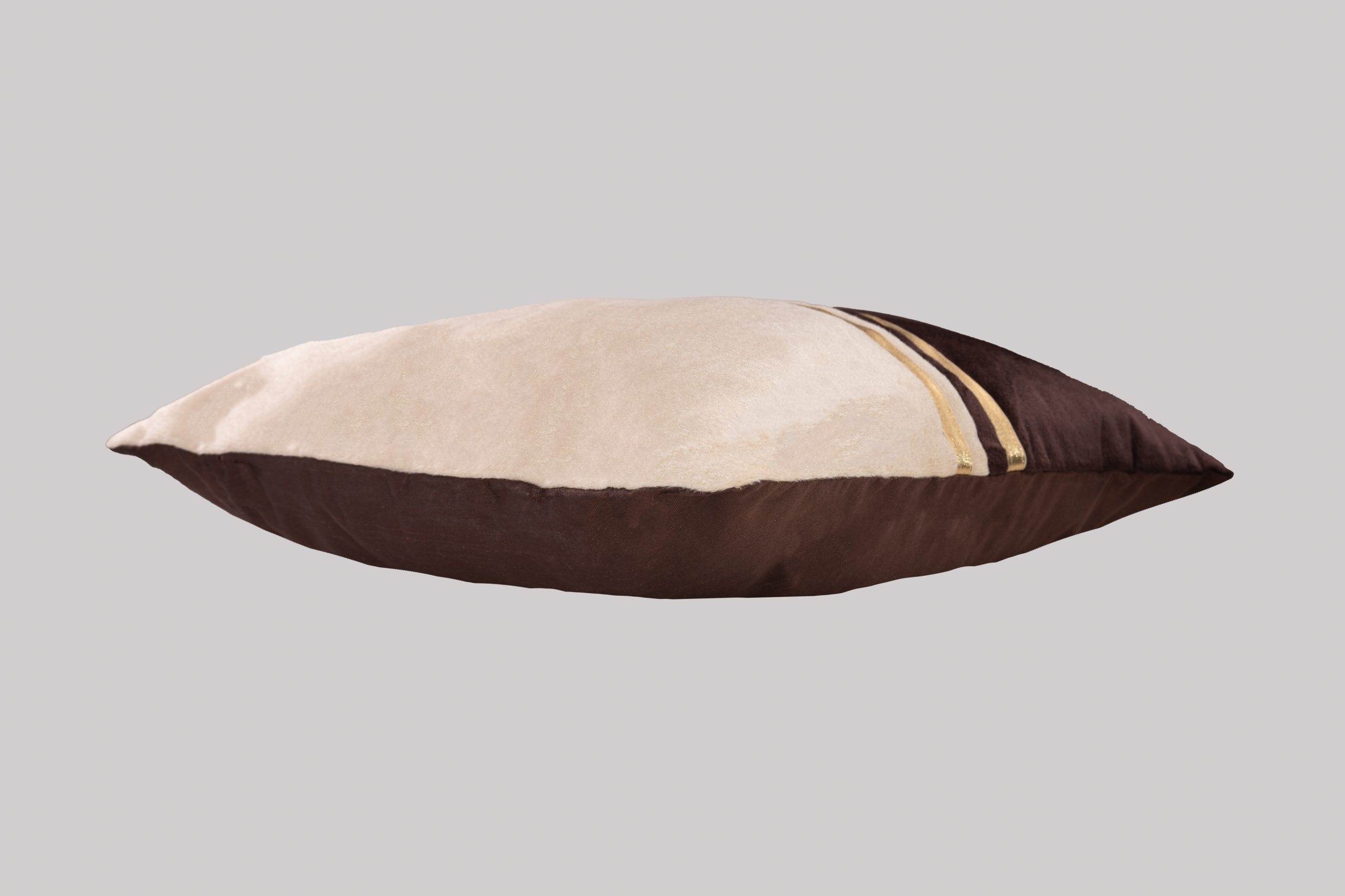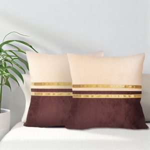 - Material: Holland Velvet, Color: Brown and Beige, Pattern: Golden Line Cushion Covers.